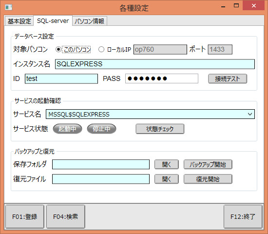 設定画面ではLAN内のSQL Serverにアクセスする設定があり |