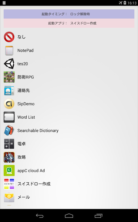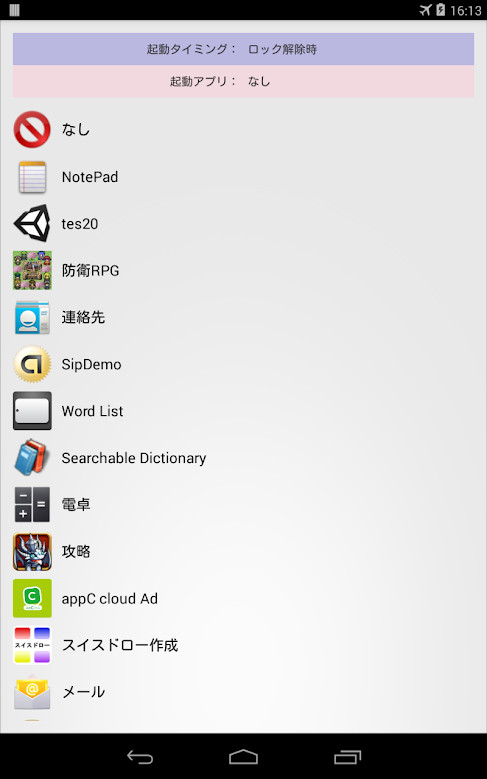 アプリを選択すると「起動アプリ」にアプリ名が表示されます。 |