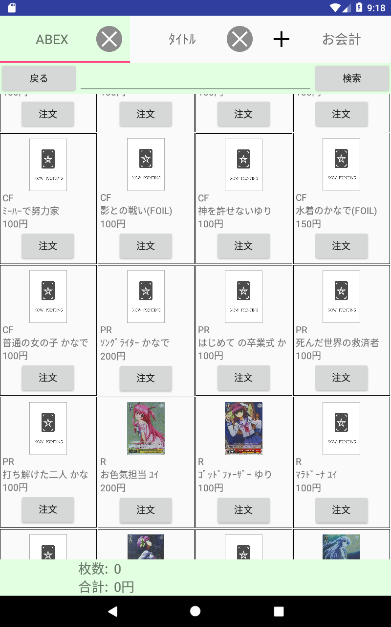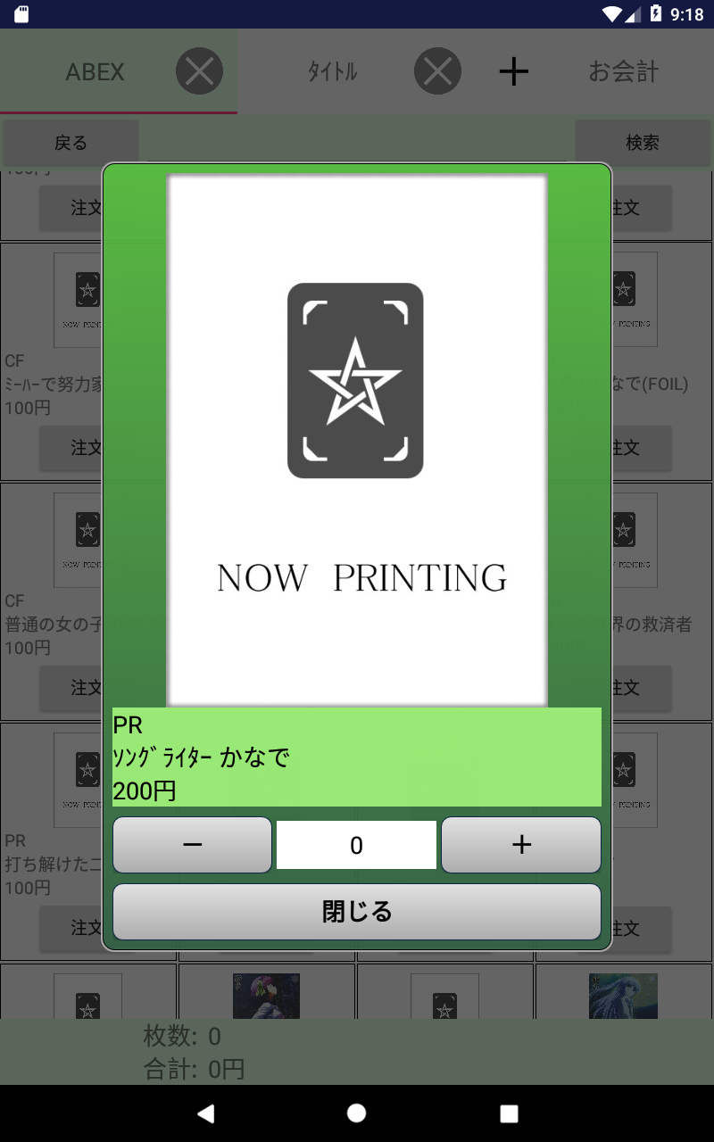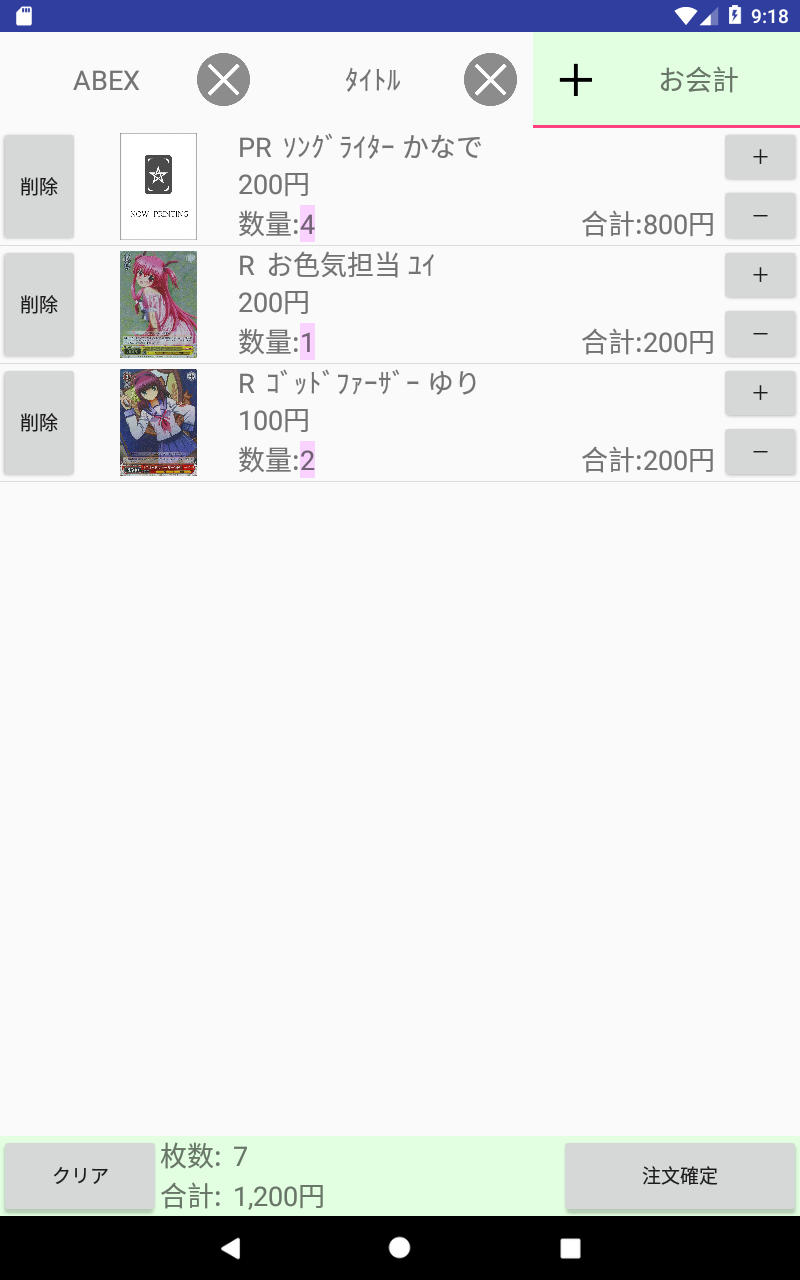お会計タブに切り替えると注文したものの一覧が表示されます。 |